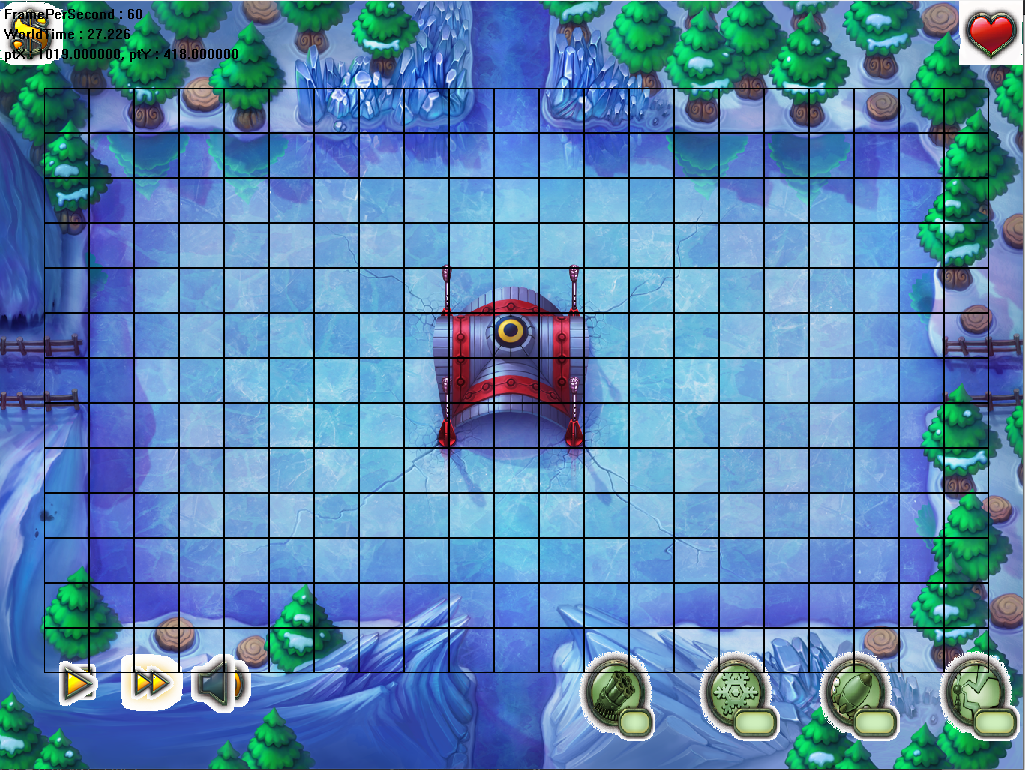 배틀씬에 타일맵을 생성했고 지금은 약간 위치 조정된 4개 타워를 클릭하면 타일맵에 타워를 그릴수 있게 된다.